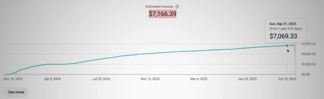This YouTube short has earned $7,166. It was posted almost two years ago and still brings in around $200 in passive income every month. And this is just one of my many shorts. I have dozens of others, posted months or even years ago, that continue to go viral and generate passive income for me month after month.