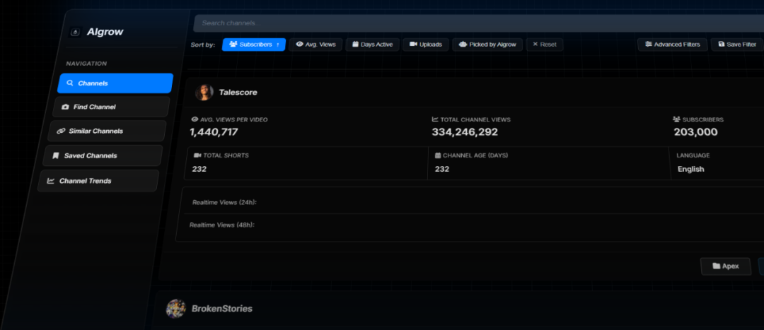 When choosing a niche, finding successful reference channels is crucial, as it verifies whether the niche is viable. I use a tool called algrow.online, which provides a database of both short and long-form video channels.