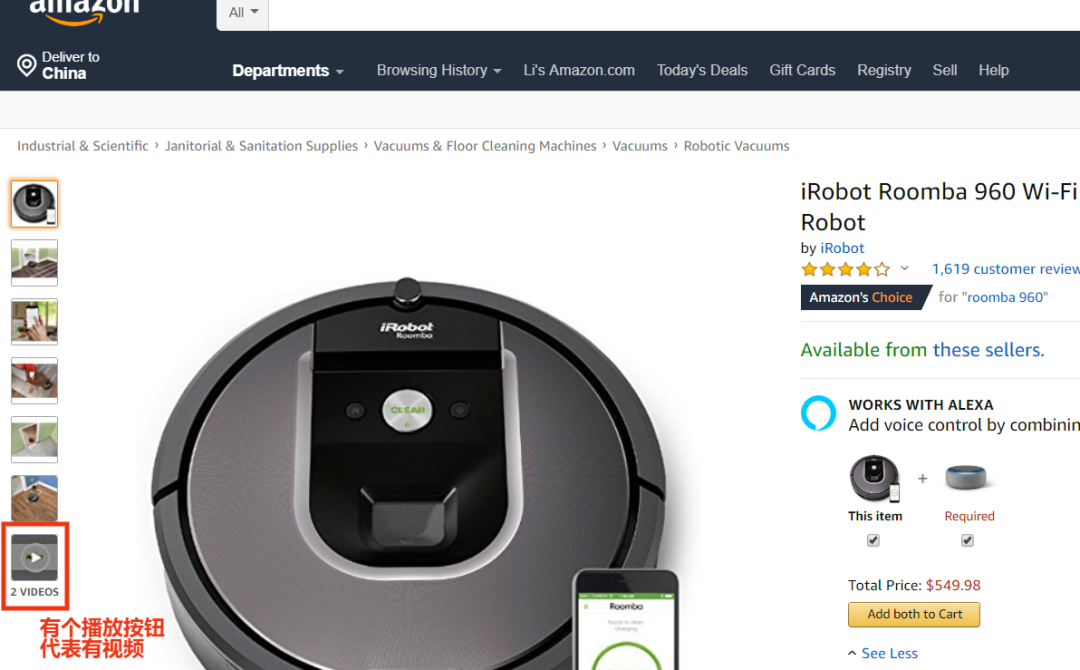 Nowadays, many products have introductory videos. For example, this robotic vacuum cleaner has a play button, indicating that there is an introductory video. Let’s download it. The method is as follows: Right-click to view the webpage source code, search for “mp4” to find the complete address of the video. You will find dozens of URLs containing “mp4” in the source code. Copy the video URL, open it in the browser, right-click on the video, and save it to your computer.